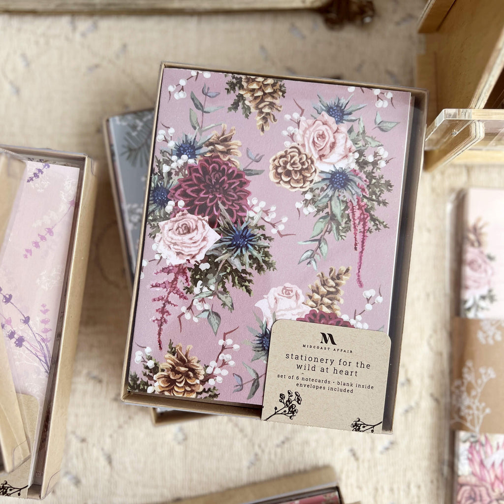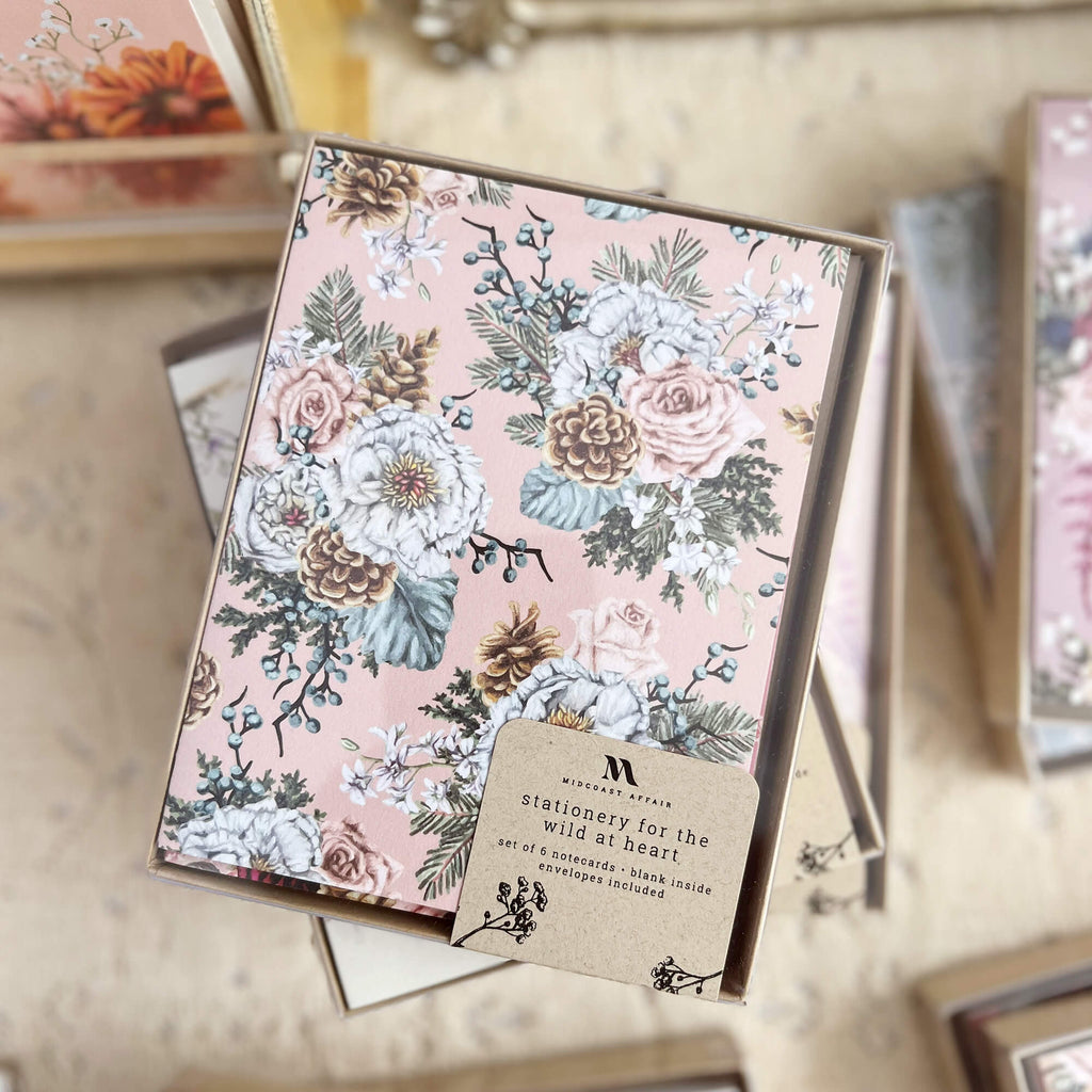 Wild and whimsical hand-illustrated wintry florals. Top card is picked at random for each set made per order. Each set includes: